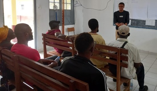 Carl speaks to the CHWs about their challenges and coping mechanisms when working during the conflict