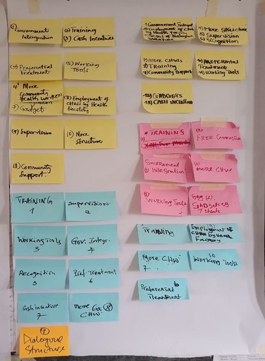 The study included a participatory ranking exercise in which CHWs were asked to identify and prioritise their support needs. This involved group discussions in which CHWs ranked and justified support strategies based on their perceived relevance and impact.