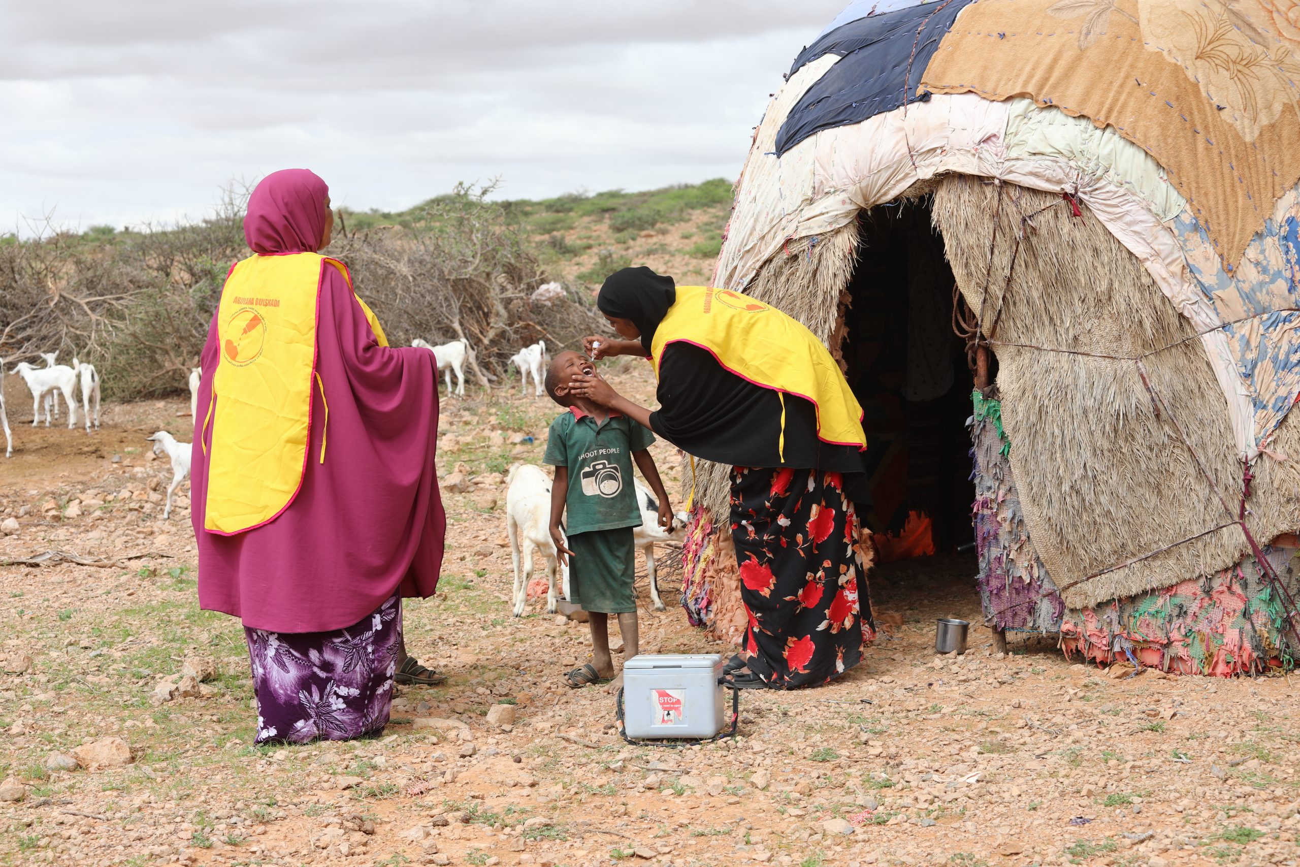 Lead image: Frontline health workers in Somalia working under very challenging circumstances. These women are working to reach every child through a polio vaccination (nOPV2) campaign for nomadic populations. Putland, Somalia – October 2023 © WHO [opens new tab]