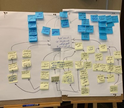 What sort of intervention could help address this double burden? The group’s conversation considered organizing leisure activities with the family, petitioning employers for childcare and secure commuting to work, educating husbands, professional training, but every suggestion was questioned. “Who will do that?” Who will accept that?” One of the participants, a health educator working in the Aarsal region said: “We do this together”. The others liked the idea of collective action by healthcare workers, and unanimously agreed to form “a support group”. Thereafter they considered how such a support group might benefit them and realised that almost all the factors they cited as causing the double burden of responsibility could be resolved by an active and competently managed support group. They included those same ‘structural’ problems that they had rated highly but then resigned themselves to not considering because of the difficulty of addressing them. Indeed, the support group can play the role of a syndicate, advocating, lobbying and negotiating for their rights. A participant said: