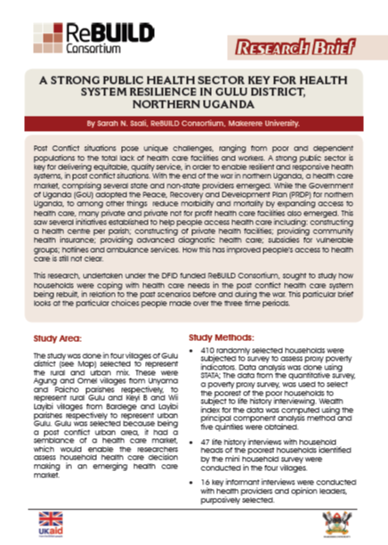 This brief is one of two briefs from ReBUILD’s research on health system financing and households’ coping strategies for health care needs in post-conflict northern Uganda.