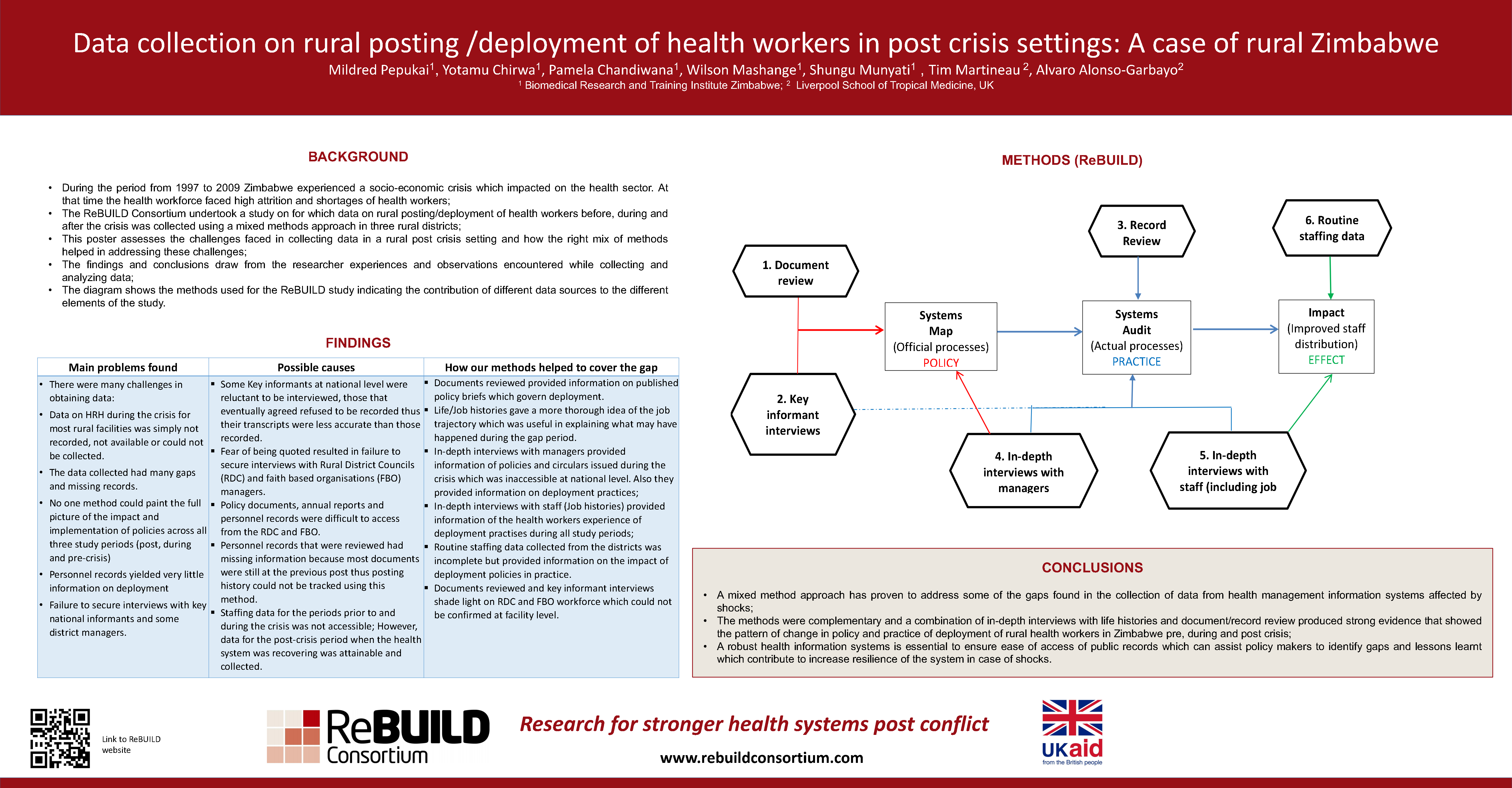 Poster from ReBUILD’s health worker deployment study in Zimbabwe, presented at the 4th Global Symposium on Health Systems Research 16th-18th November, Vancouver, Canada