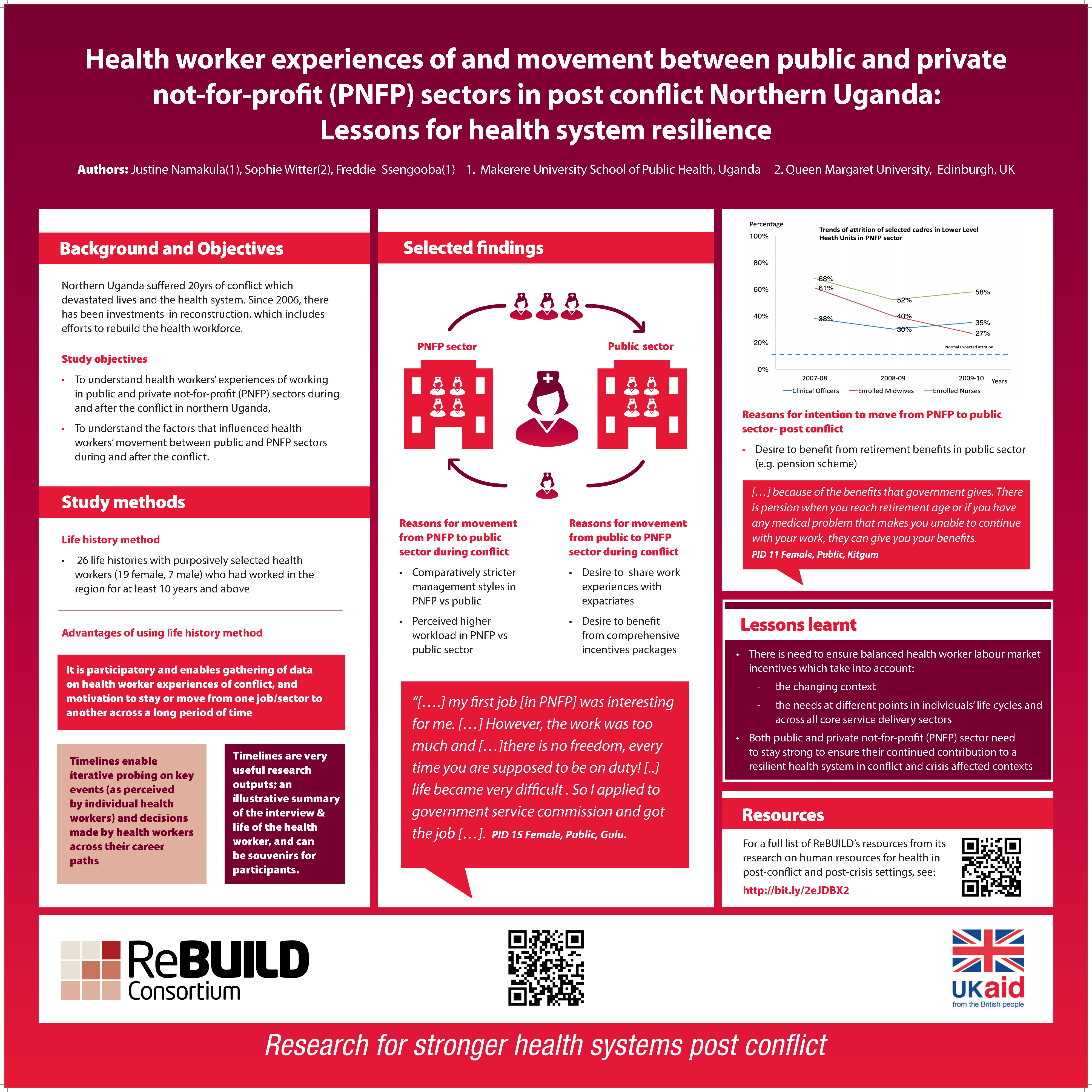 Poster from ReBUILD’s health worker incentives study in Uganda, presented at the 4th Global Symposium on Health Systems Research 16th-18th November, Vancouver, Canada.