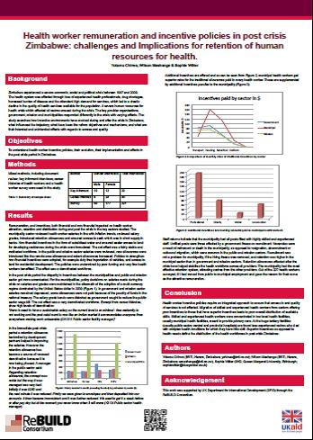 ReBUILD Poster presented at the Third Global Symposium on Health Systems Research in Cape Town 2014: The study examines how incentive environments have evolved during and after the crisis in Zimbabwe