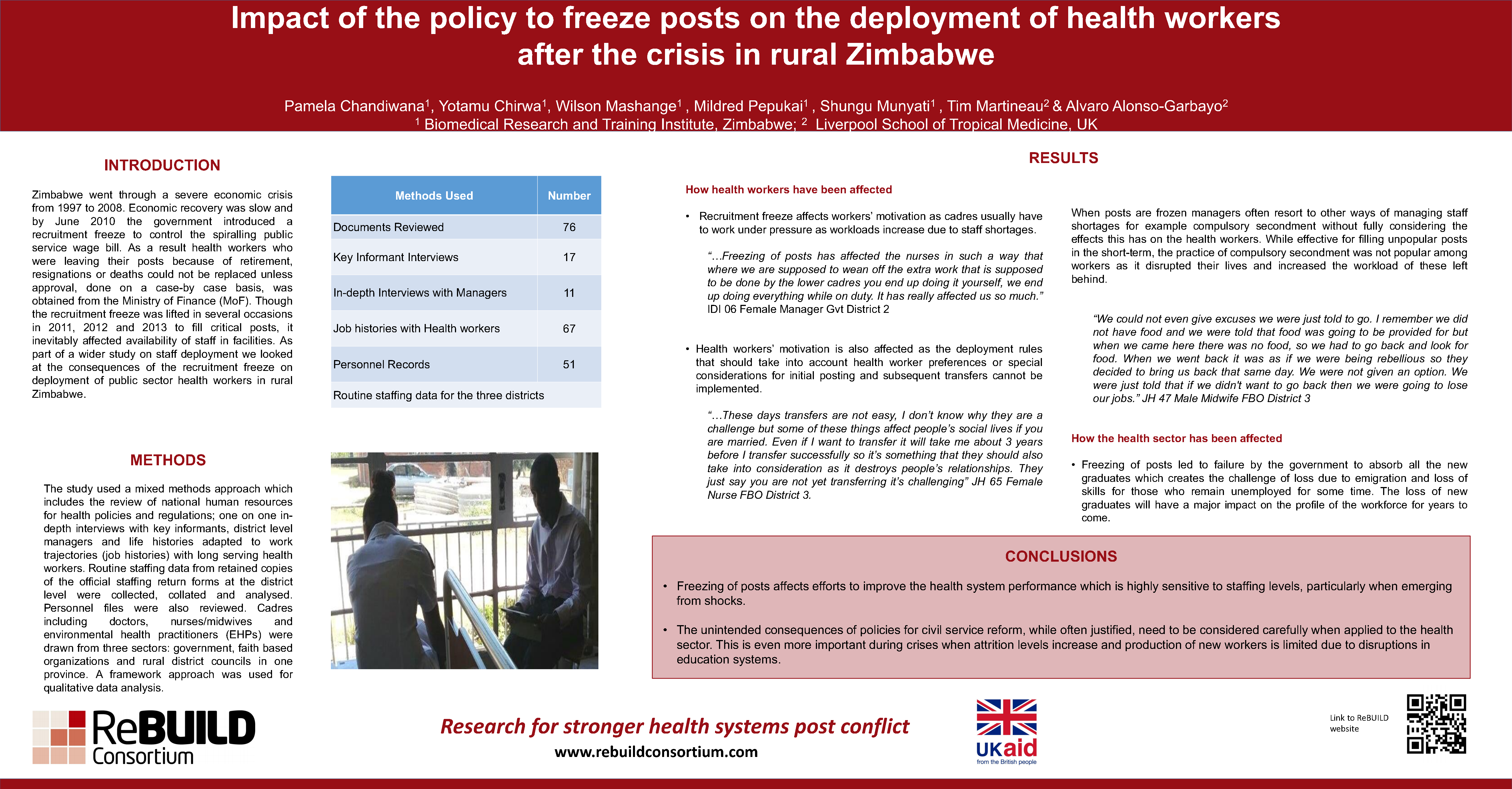 Poster from ReBUILD’s health worker deployment study in Zimbabwe, presented at the 4th Global Symposium on Health Systems Research 16th-18th November, Vancouver, Canada