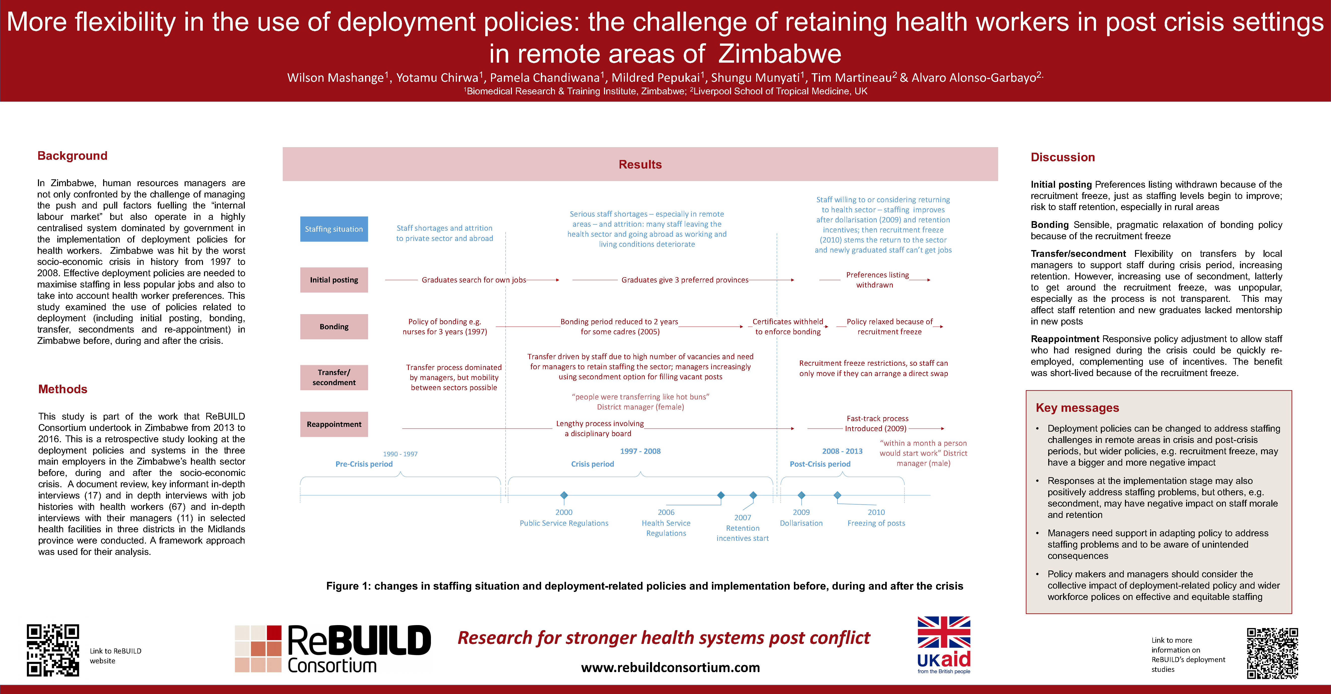 Poster from ReBUILD’s health worker deployment study in Zimbabwe, presented at the 4th Global Symposium on Health Systems Research 16th-18th November, Vancouver, Canada