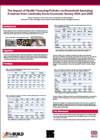 The Impact of Health Financing Policies on Household Spending: Evidence from Cambodia Socio-Economic Survey 2004 and 2009