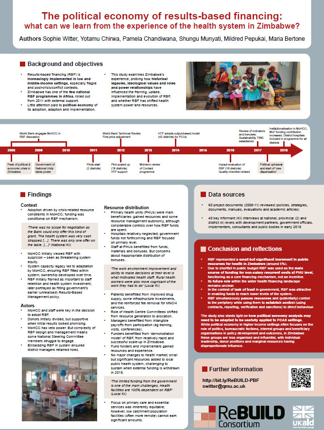 Poster presented at the Fifth Global Symposium on Health Systems Research in Liverpool in October 2018 on the political economy of results-based financing.