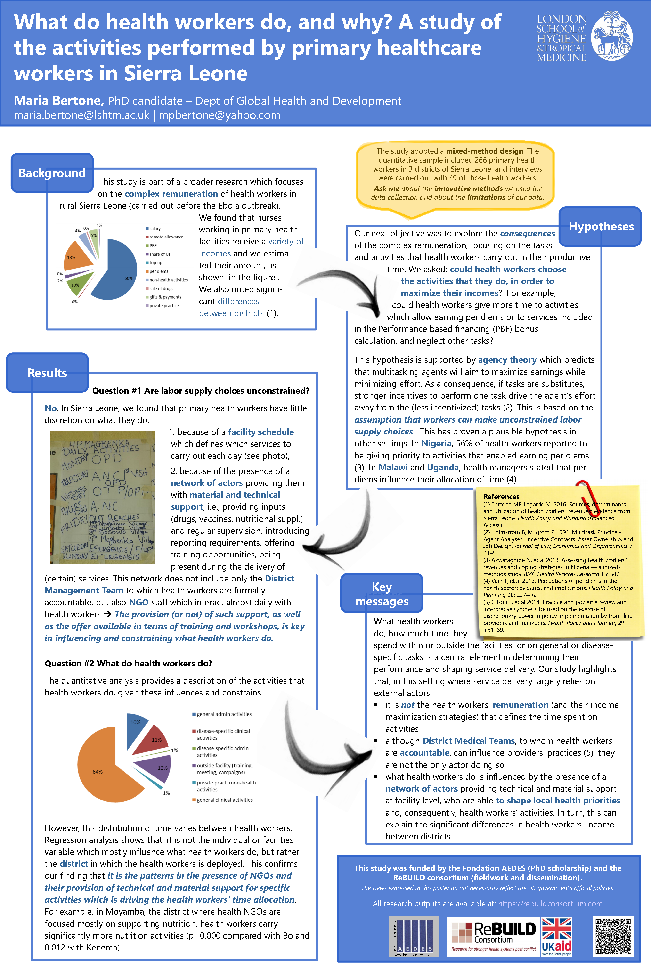 Poster from ReBUILD/LSHTM affiliate study on Health Workers’ Remuneration, Incentives and Accountability in Sierra Leone, presented at the 4th Global Symposium on Health Systems Research 16th-18th November, Vancouver, Canada