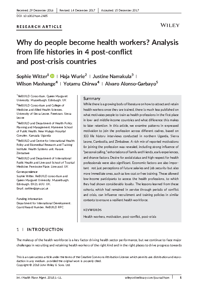 Int J Health Plann Mgmt. 2018; 1–11; DOI: 10.1002/hpm.2485